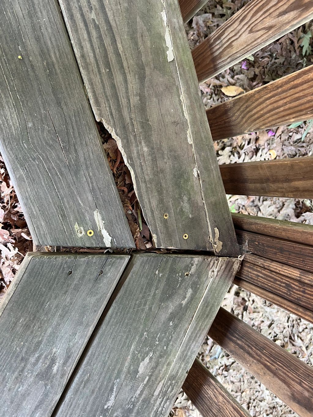 Wood on the inside of the gazebo is rotting in some places and in desperate need of sanding and a new coat of stain