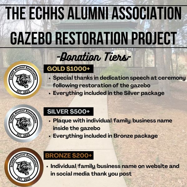 The ECHHS gazebo, located on "freshman hill", serves as a popular hang-out spot for students throughout the school day. Since 2010, the gazebo has suffered damages that make it hard to utilize to a full extent. The gazebo restoration fund aims to make repairs and ensure the gazebo is maintained in perpetuity.